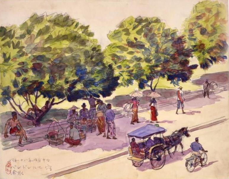 伊東深水《南方風俗スケッチ》より「昭和18年4月20日バンドンにて」市川市所蔵