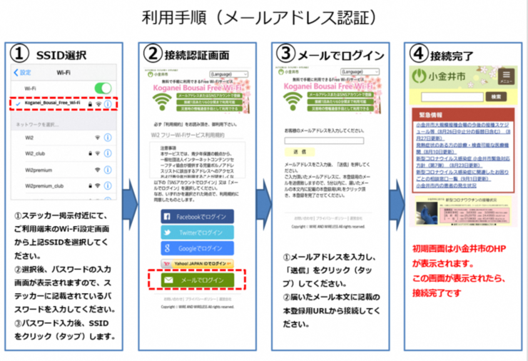 注記:お問い合わせの際は、小金井市のWI−FIサービスである旨をお伝えください。