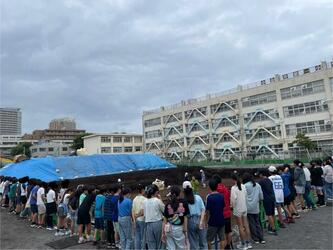 令和7年7月16日(水曜)、小金井第一小学校の6年生及び教諭約140名が発掘調査の見学に来ました。