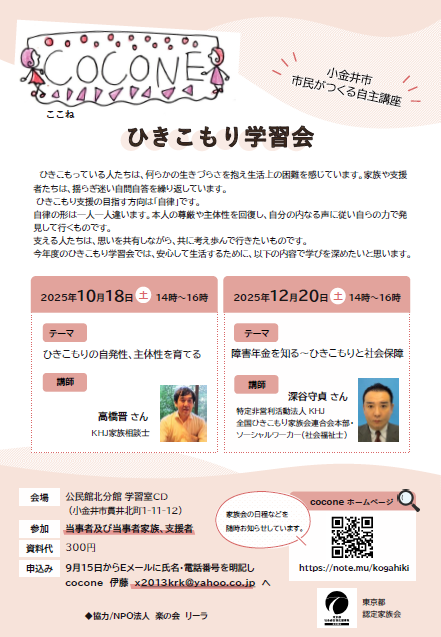 7. 市民がつくる自主講座「ひきこもり学習会」を開催します