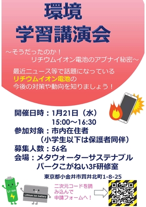 環境学習講演会−「そうだったのか!リチウムイオン電池のアブナイ秘密」の参加者を募集します