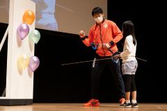 東京2020大会報告会に登壇し、小中学生やボランティアにご応募・ご協力いただいた方からの質問に答えていただいた後、デモンストレーションを披露してくれました。