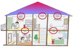 東京都の火災予防条例により、リビング、ダイニング、子供部屋などの、普段使っている全ての居室、階段、台所の天井又は壁に設置が義務付けられています。