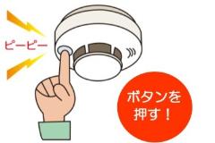 本体のボタンを押す、もしくは付属のひもを引いて点検します。正常な場合は、正常を知らせる音声や警報器が鳴ります。定期的(少なくとも半年に1回以上)に点検しましょう。
