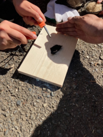 当日は全員がハナズミ作りを体験できるよう、クラスごとに実施し、炭化するまでの待ち時間は火起こし体験を行いました。公園で採取した松ぼっくりや葉、各家庭から持参した野菜などを使い、各々が楽しそうにハナズミを作っている姿が大変印象的でした。前回の特別講義に続き、今回も非常に盛り上がりました。