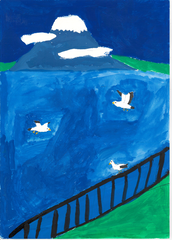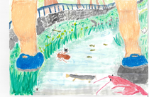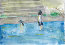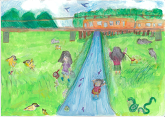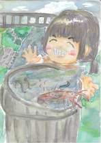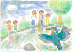 守りたい私の大好きな夏の水辺は、まさにこの絵が示す姿だろうと思いました。野川が流れ、岸辺には緑が溢れ鳥や昆虫が元気に生きている。 そこで笑顔いっぱいに遊ぶ子供達。 実は、この光景は小金井に住む昔の人も残したい姿として強く願い続けた結果この姿が残っているのです。 今を生きる子供達もこの姿を永遠に残すために、この思いを持ち続けてほしいと思います。