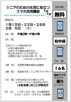 シニアのための生活に役立つスマホ活用講座チラシ(PDF:250KB)