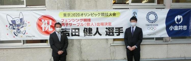 東京2020オリンピック競技大会出場を祝う横断幕を作成。また、終了後は小金井市職員が拍手で見送り、エールを送りました。